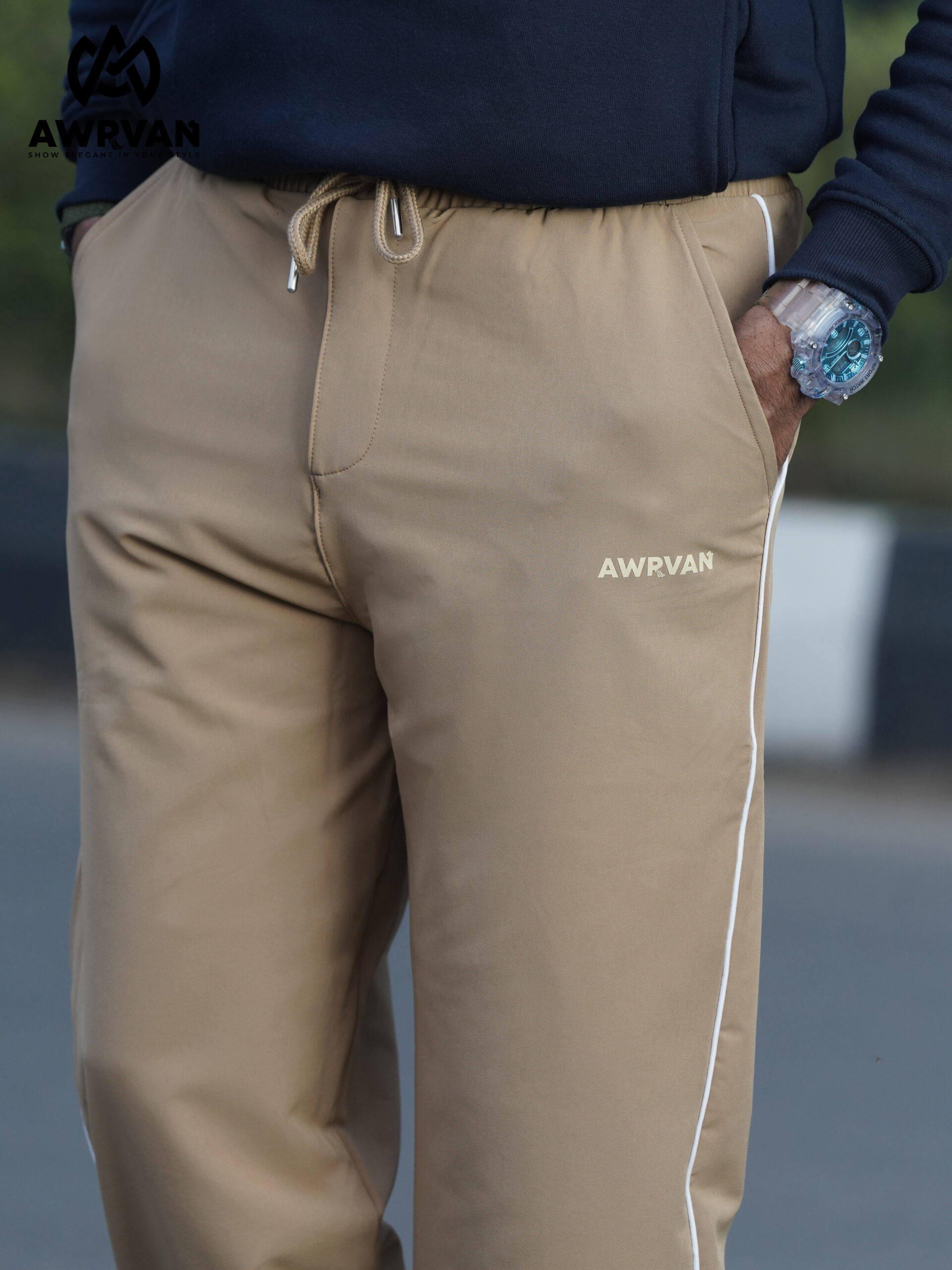 The fabric used is high quality China fabric which is comfortable for all seasons. Our premium joggers have two front pockets and one back pocket. The pants have Awrvan branding on the front side. Our joggers have high quality eyelets, drawstrings and zippers. Each jogger will be wrapped in poly and will have silicone to prevent moisture.
